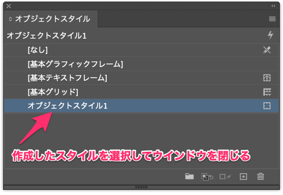 5.新規オブジェクトスタイルを作成したら、作成したスタイルを選択して完了