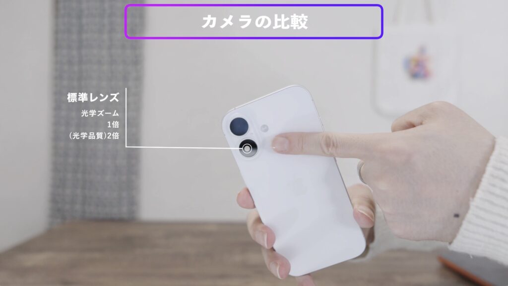 - iPhone 17 (無印): 超広角(0.5倍) / 標準(1倍・2倍) の2眼レンズ。
