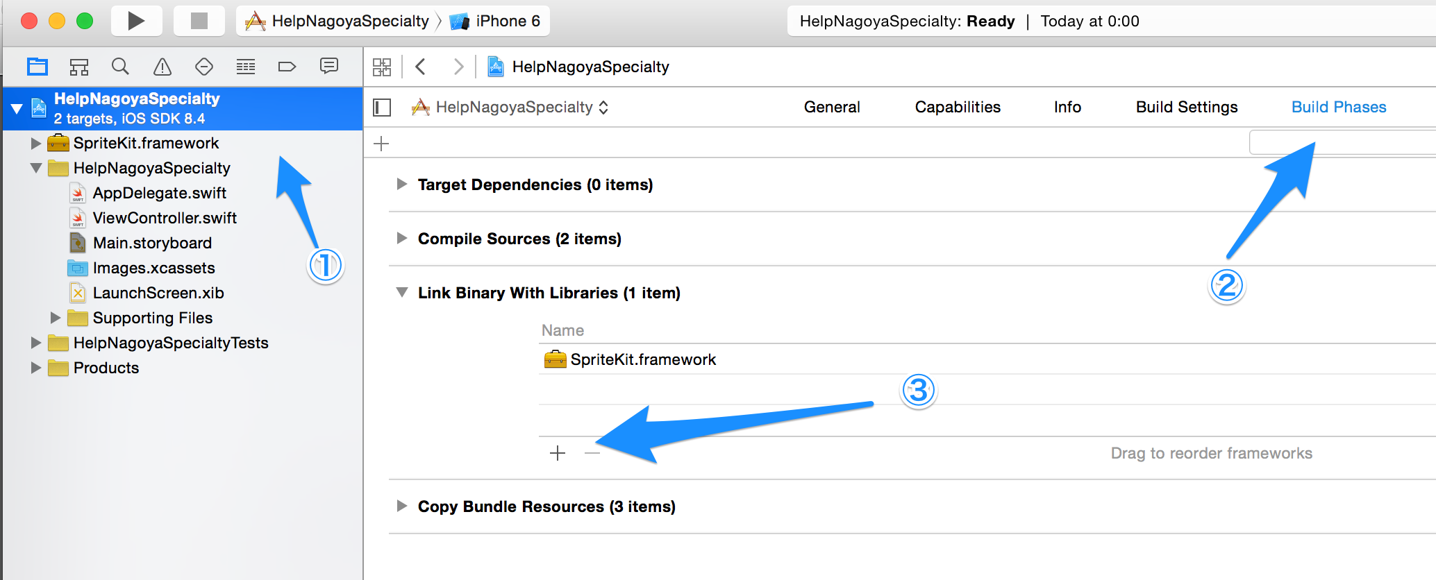 [Xcode] Custom class にて SKView が選択できない プログラミング 2015.09.06 Xcodeの新規アプリで「Single View Application」を選択した際に、Custom Classへ「SKView」が指定できなかった。 理由はSpriteKit フレームワークが追加されていないことであった。 フレームワークの追加方法は以下の通り。